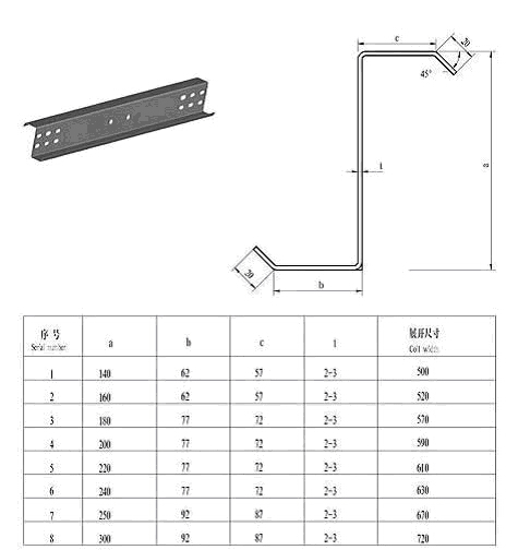 Size of Z purlin : 101.6-304.8mm adjustable (special size available)